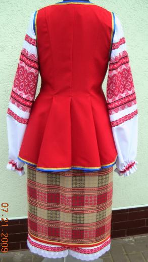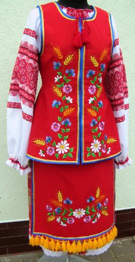 Ukrainian Poltava Costume #2: Red Costume includes blouse, skirt, underskirt, embroidered vest and apron.